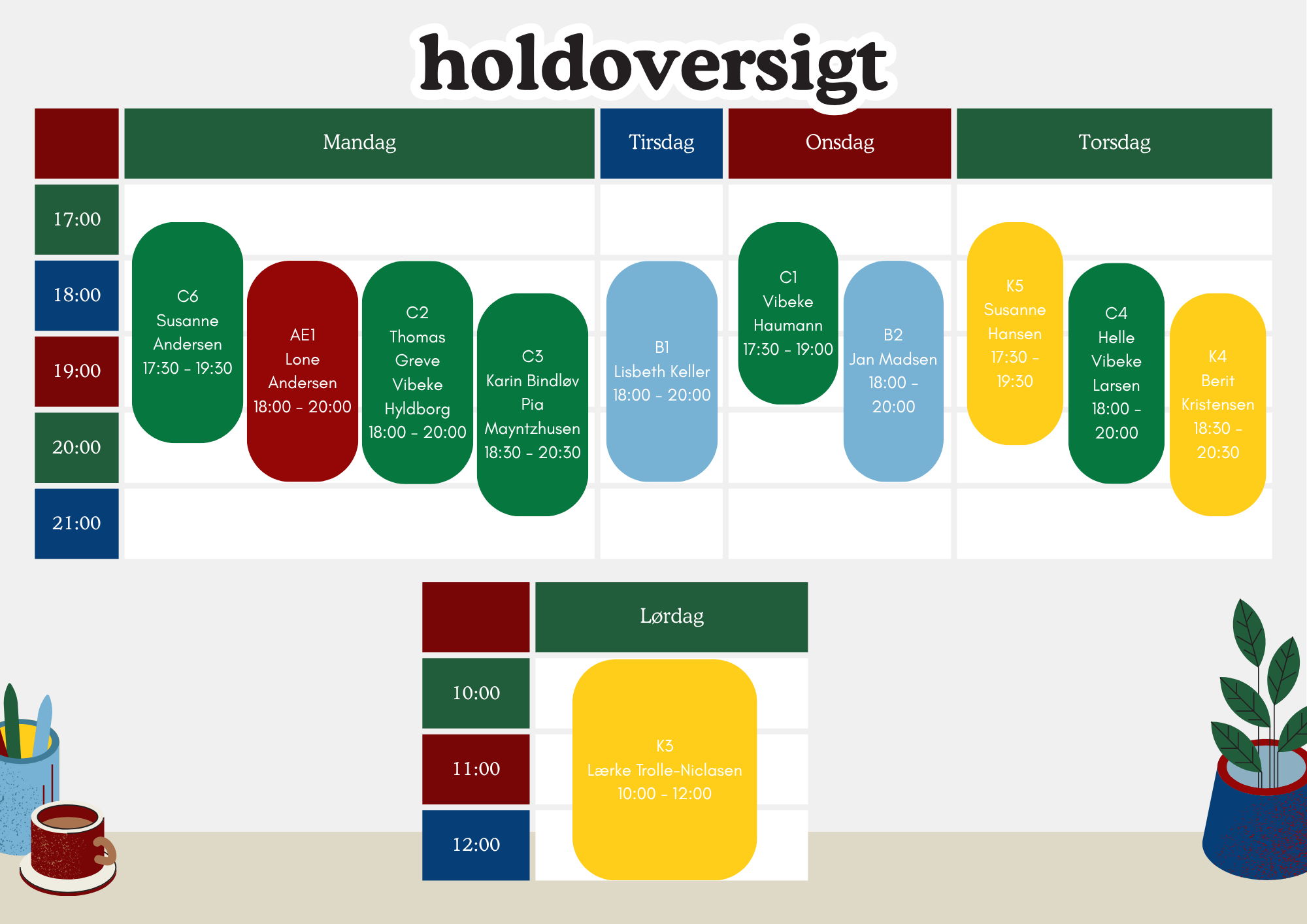 Holdoversigt